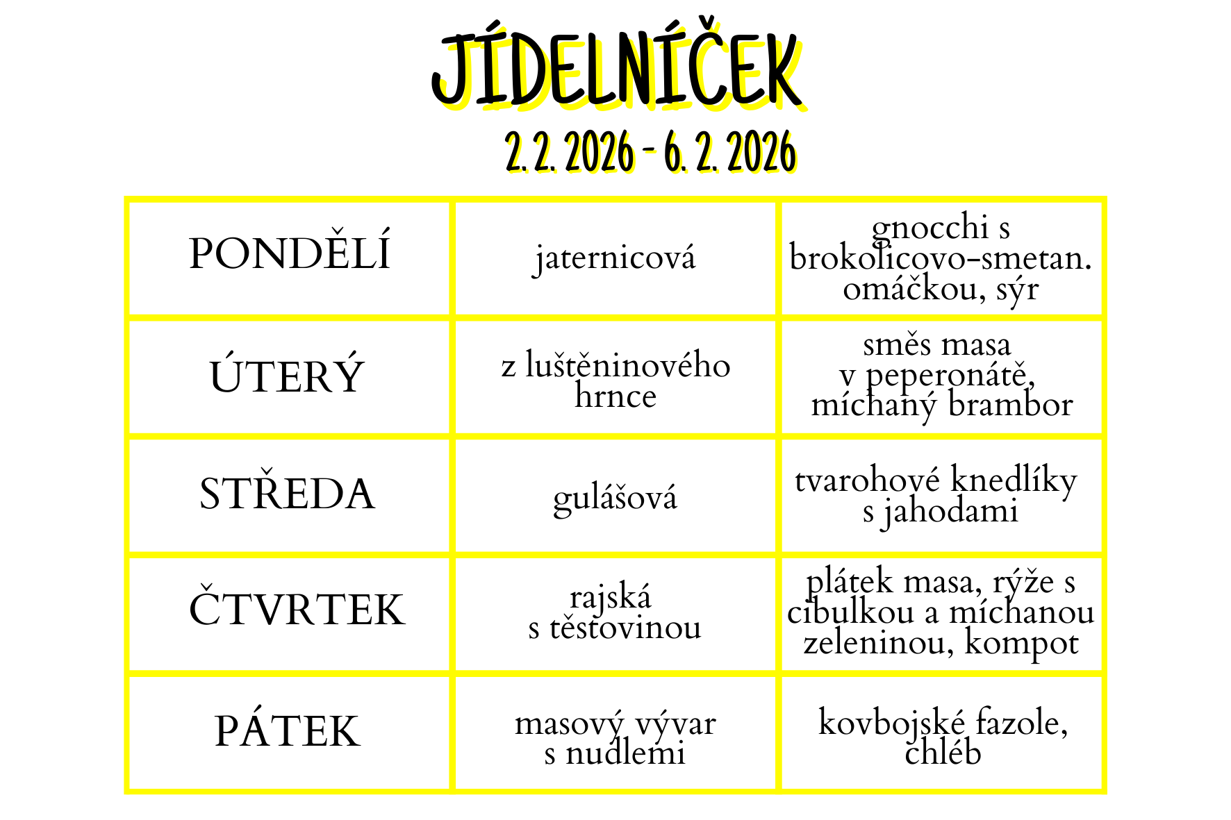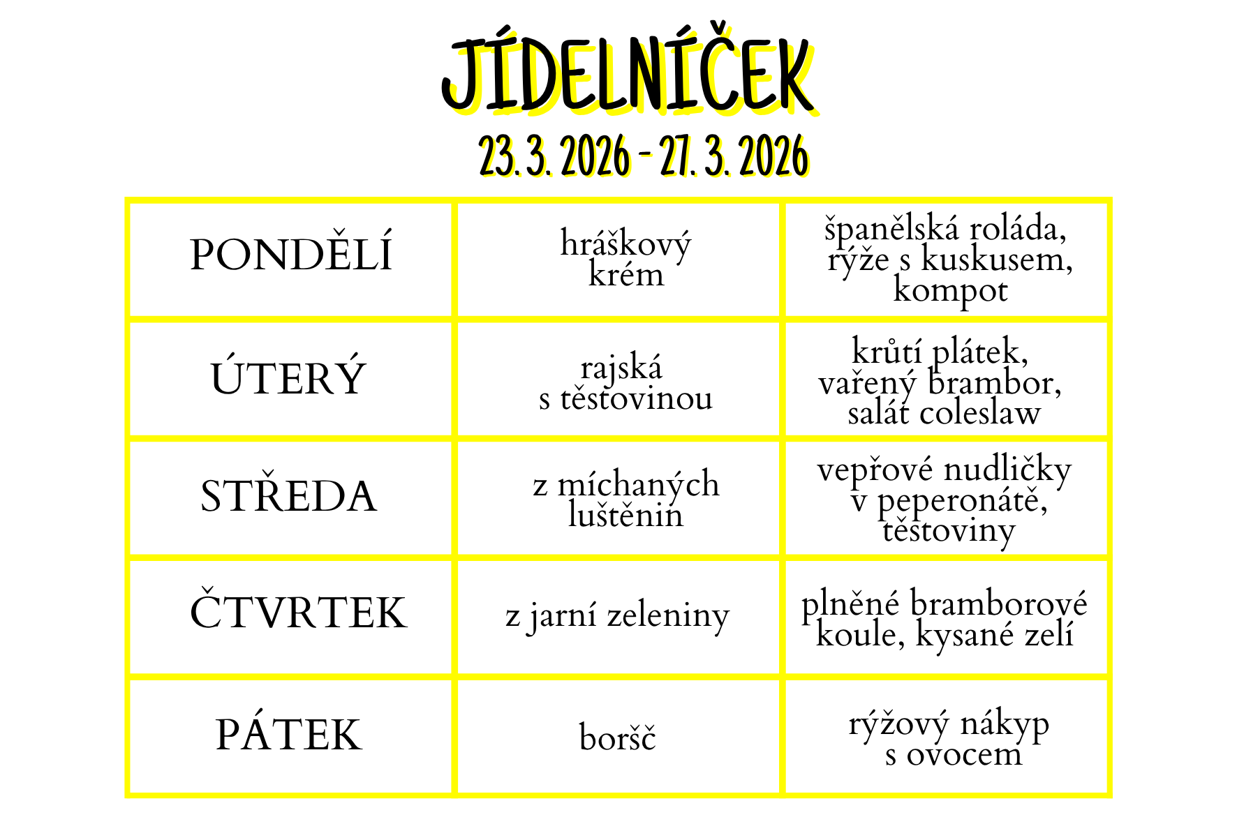 Změna jídelníčku vyhrazena!